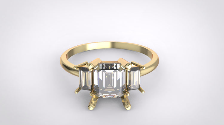 The Triple Spark ring features a breathtaking trio of square-cut diamonds, with a brilliant center stone flanked by two perfectly matched smaller diamonds. This exquisite design symbolizes elegance, balance, and timeless beauty, making it a perfect choice for any special occasion. A dazzling statement piece that captures light from every angle, the Triple Spark ring is a must-have for those who appreciate refined luxury.