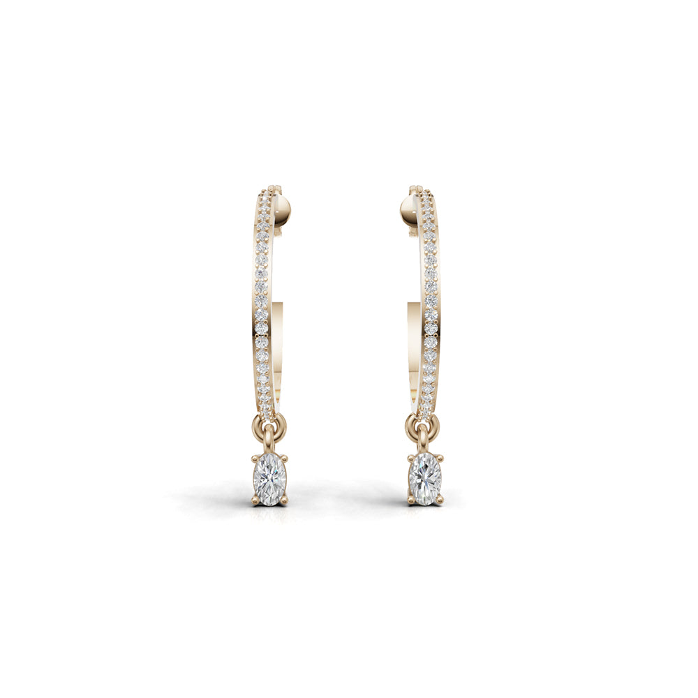 These dazzling diamond earrings feature a shimmering circle of stones that radiate brilliance from every angle. Accented with a freely moving gem, they catch the light with every turn, creating an elegant dance of sparkle. Sophisticated yet playful, they’re the perfect finishing touch for both special occasions and everyday glamour.
